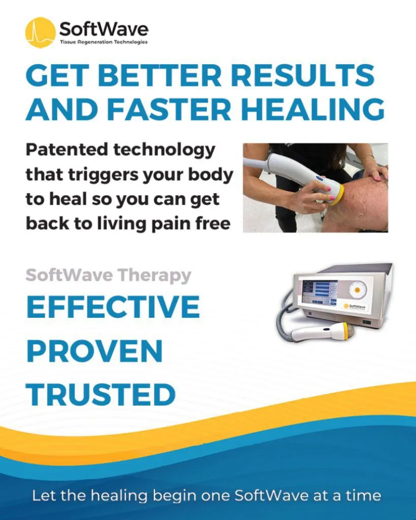 SoftWave Therapy is an effective approach to healing the human body using acoustic waves to stimulate your body’s natural healing process. Treatment is safe, doesn’t require surgery, drugs, or needles, and helps reduce pain, speed up recovery, and regenerate tissue. Easy to use, SoftWave is an effective and trusted treatment option that improves patient outcomes and boosts clinic productivity.